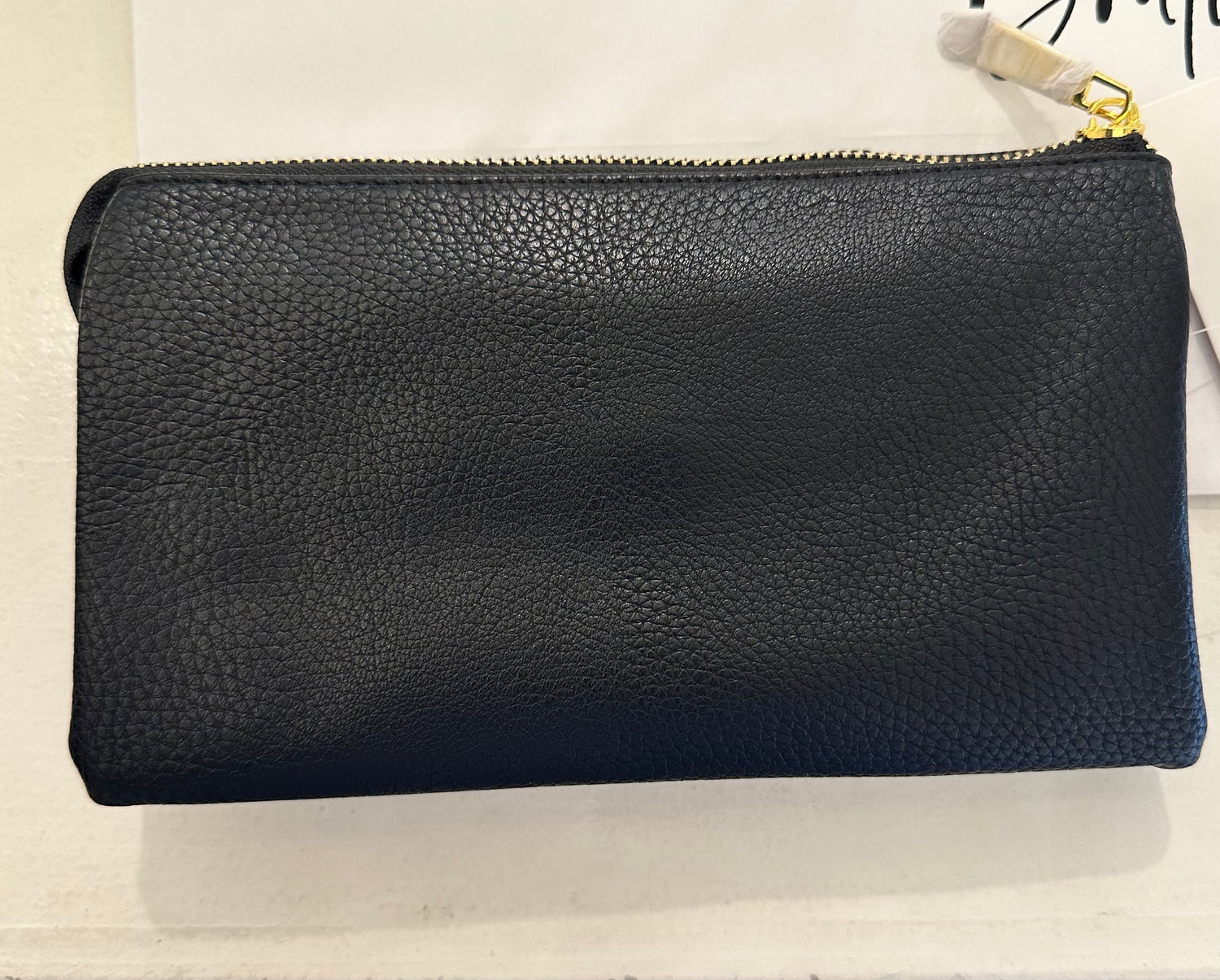 Sleek, simple, and effortlessly chic — this classic black crossbody is your new go-to essential. Crafted from textured faux leather with a gold-tone zipper closure, it’s perfect for stashing your cards, keys, or touch-up must-haves. Whether you’re tossing it into a tote or carrying it solo, this minimalist piece adds a luxe finish to any outfit.