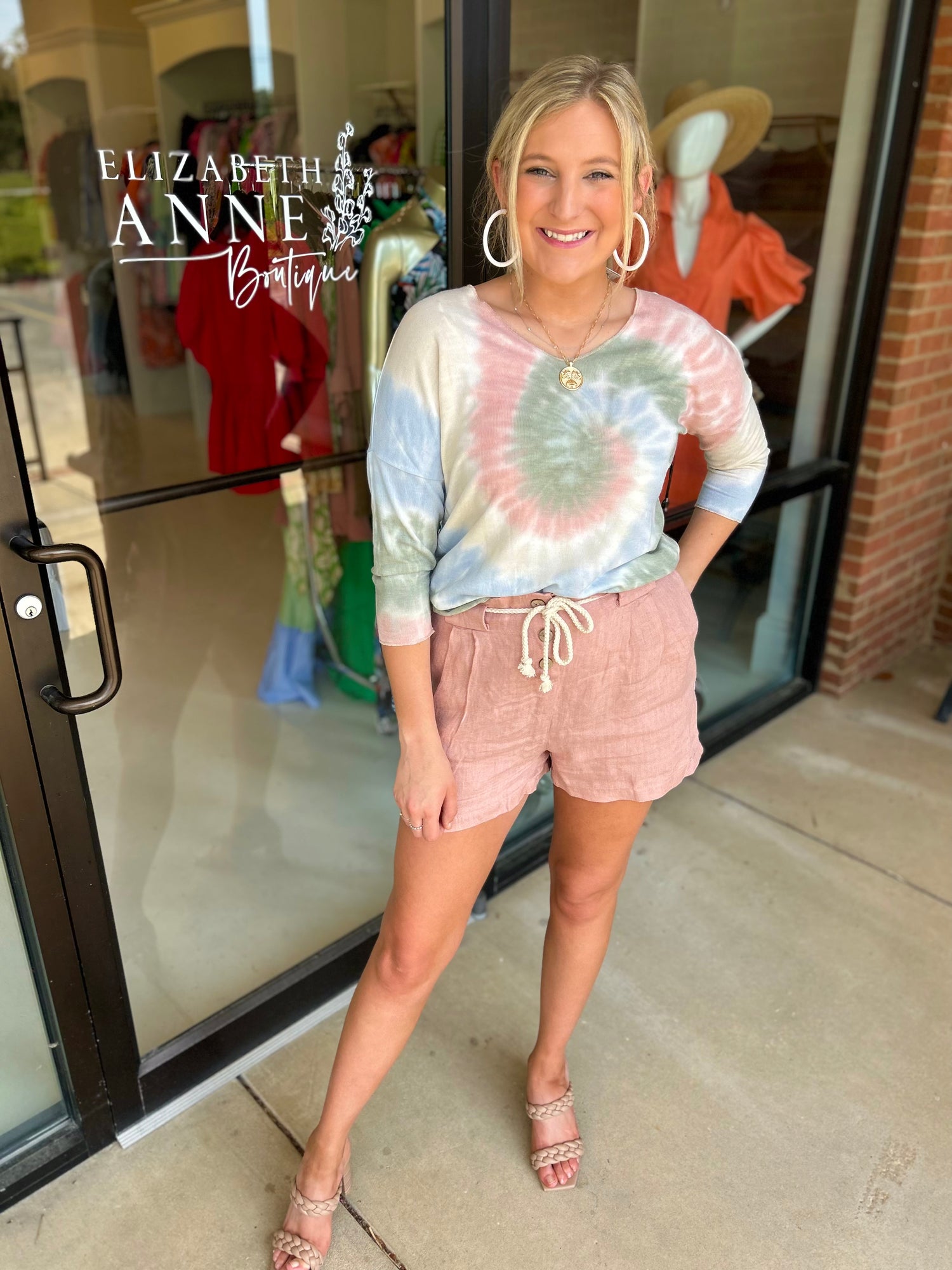 Charlie B Collection Linen Nougat Rope Belt Shorts