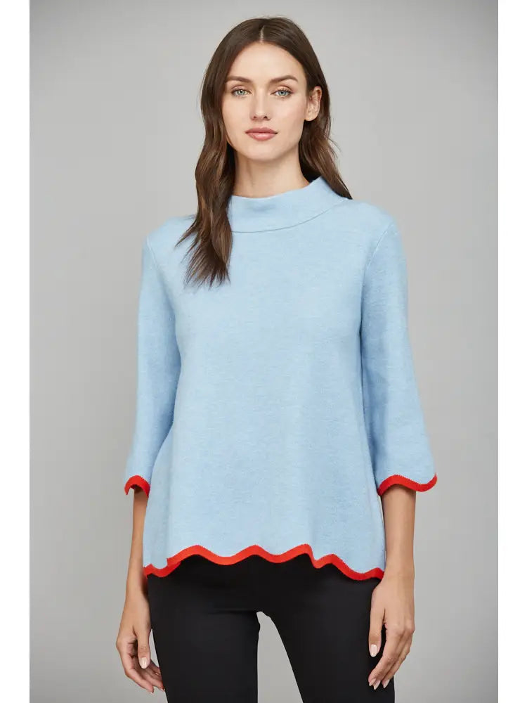 EAB Favorites Scallop Edge Mock Neck Sweater - Powder Blue & Red