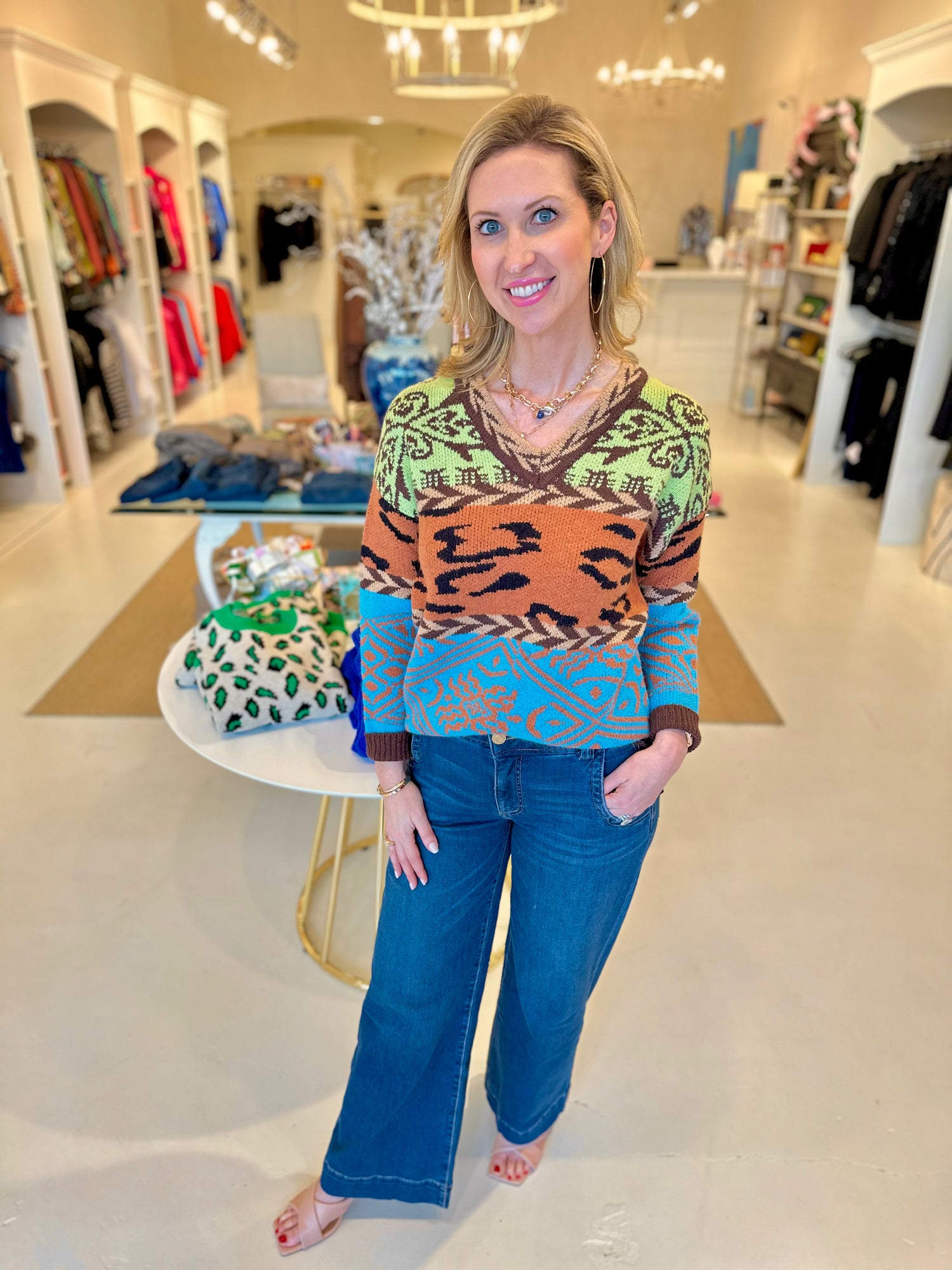 Discover vibrancy with our "Sweater Jacquard Colored". Made of soft jacquard fabric with colorful pattern for a trendy look. This sweater adds a playful and stylish element to any outfit.