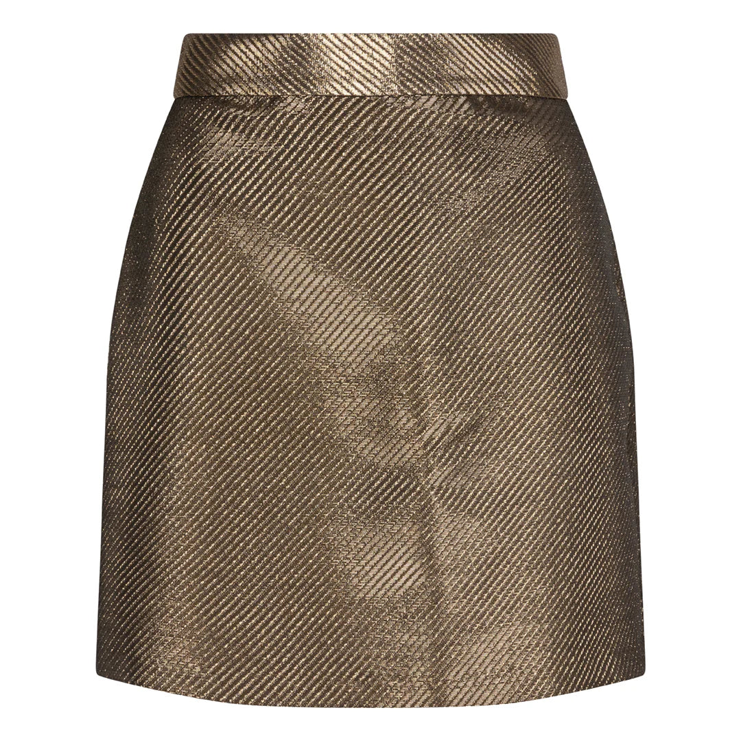 Turn heads in the Esqualo Satin Metallic Skirt in Gold — a statement piece that shines with effortless sophistication. Crafted from luxe satin with a gleaming metallic finish, this skirt catches the light beautifully for a polished yet playful look. The sleek silhouette and flattering fit are finished with a convenient back zipper closure, making it perfect for pairing with everything from cozy knits to sleek blouses. Ideal for special occasions or a chic night out.