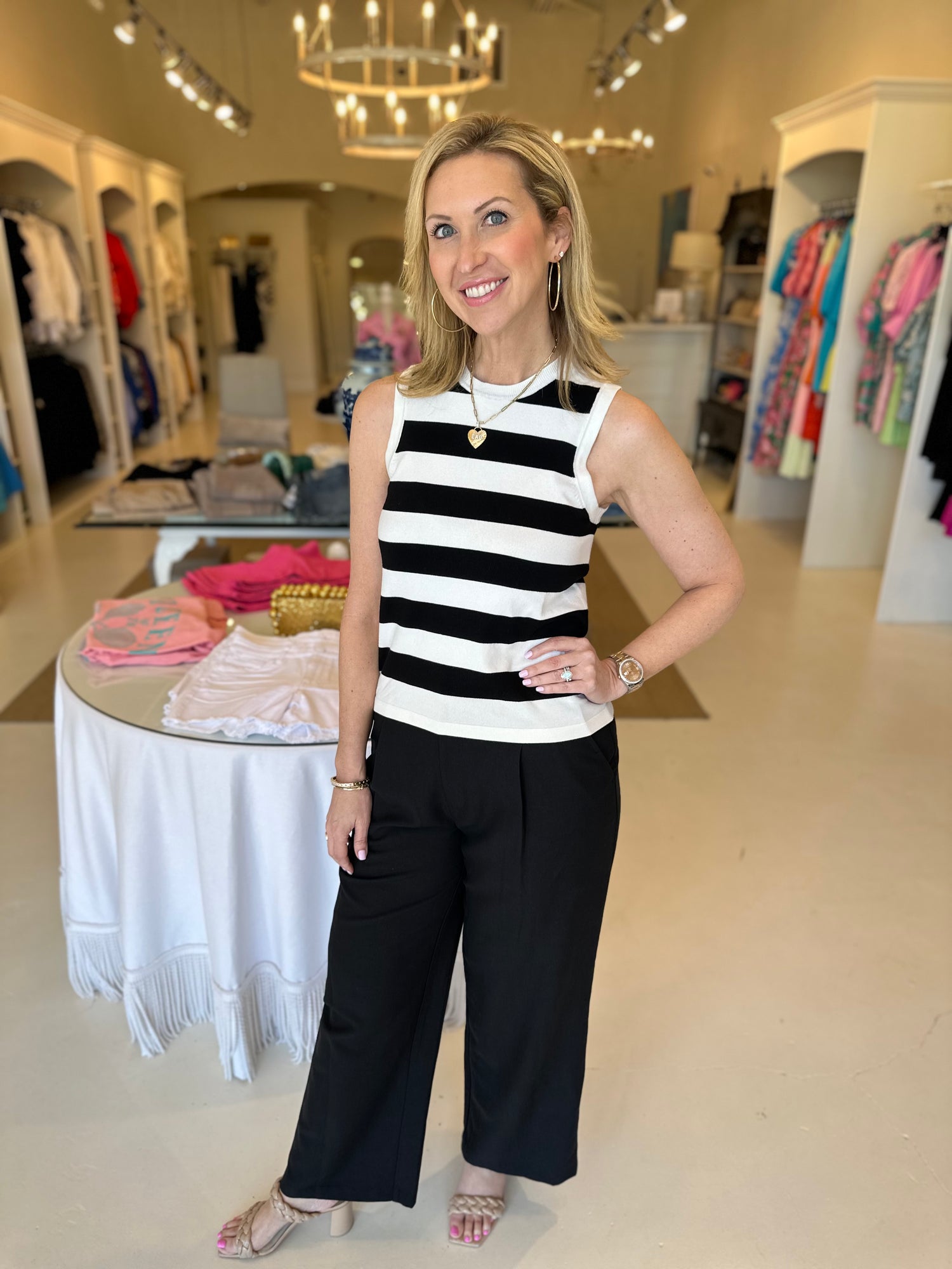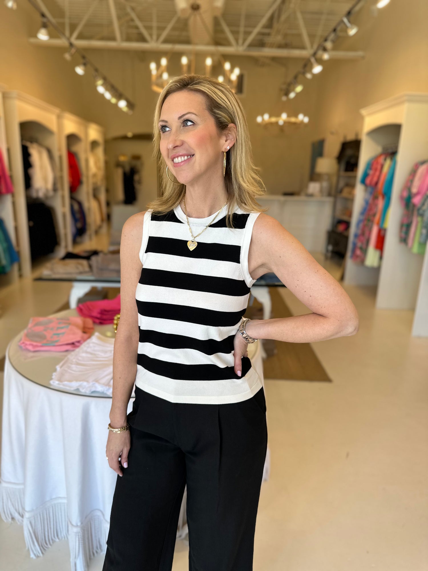 Esqualo Striped Sleeveless Top off white and black. 78% viscose. 22% viscose. Fits TTS.