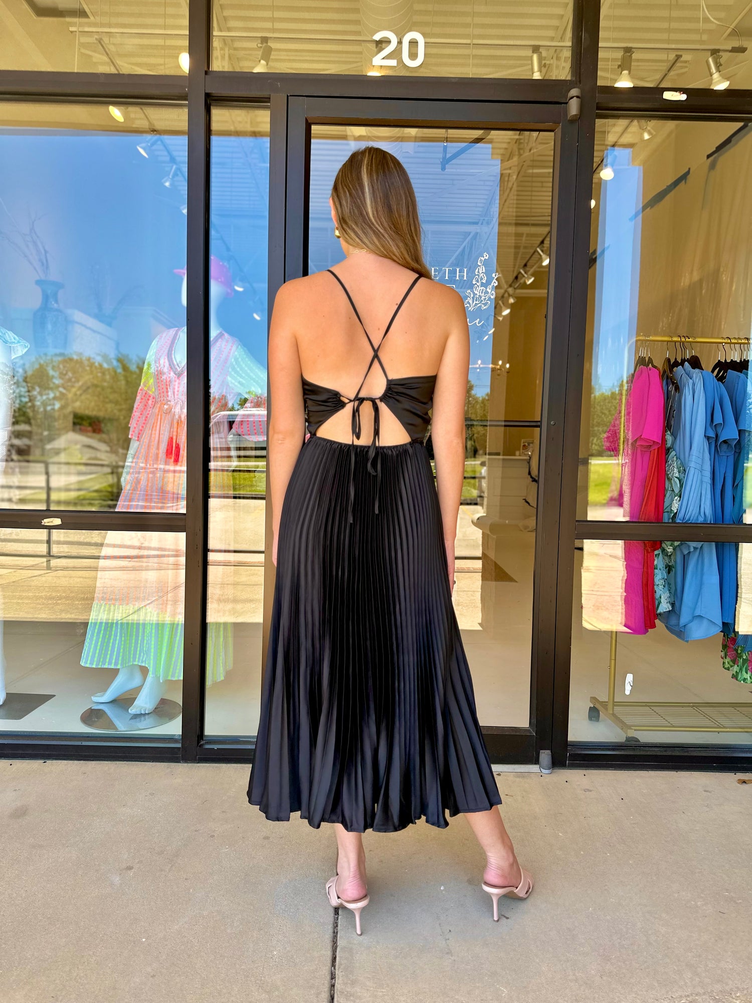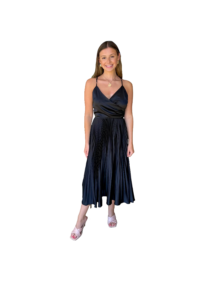 Black, Pleated Skirt, Crossed Back Straps, V-Neck