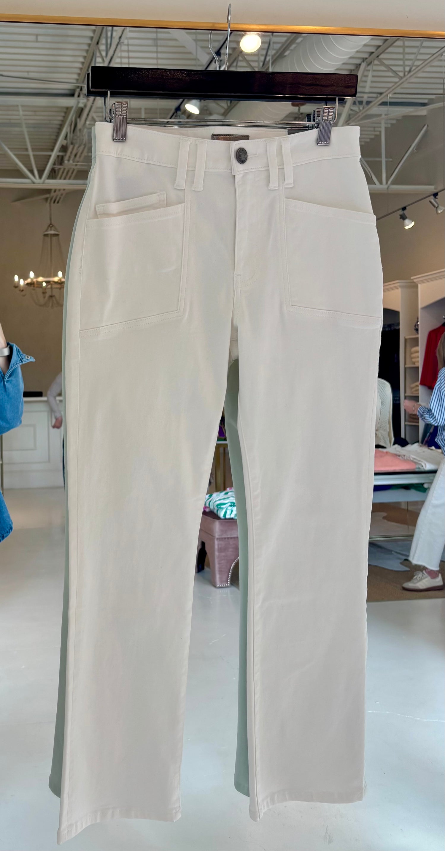 Elevate your everyday style with the Kelsey High Rise Ankle Flare in Cream. Designed with a flattering high-rise fit and just the right amount of stretch, these pants hug in all the right places while the subtle flare hem adds a modern touch. The ankle length makes them perfect for pairing with heels, sneakers, or booties—versatile for both casual and dressed-up looks. A timeless neutral you’ll reach for again and again.