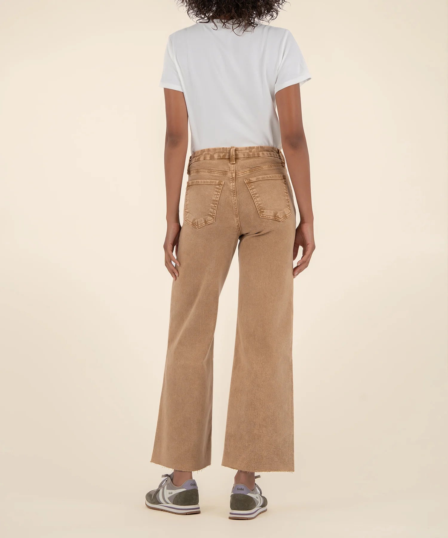 These high-rise, wide-leg jeans feature Fab Ab for a flattering fit, a raw hem for a modern touch, and a long inseam for an effortlessly lengthened look.