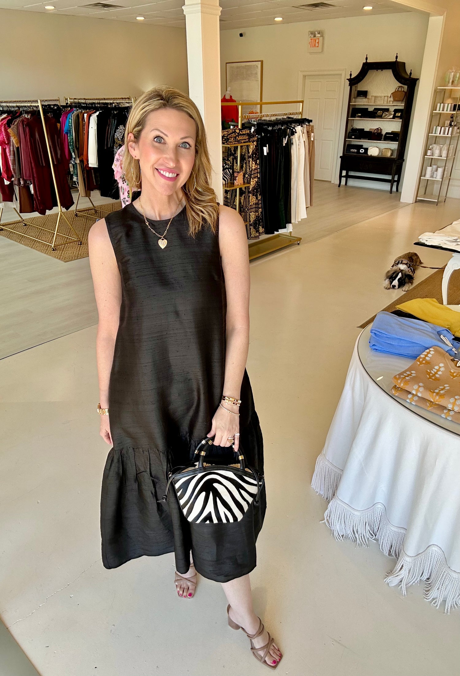 Elegance meets timeless charm in the Livro Evening Dress. Crafted from 100% silk, this sleeveless midi dress drapes beautifully with a soft, fluid silhouette. The drop waist flows into an effortless A-line skirt for a flattering, feminine shape, while the bow tie closure at the back adds a touch of graceful sophistication. Perfect for cocktail parties or formal evenings, this black silk dress exudes understated luxury with every detail.