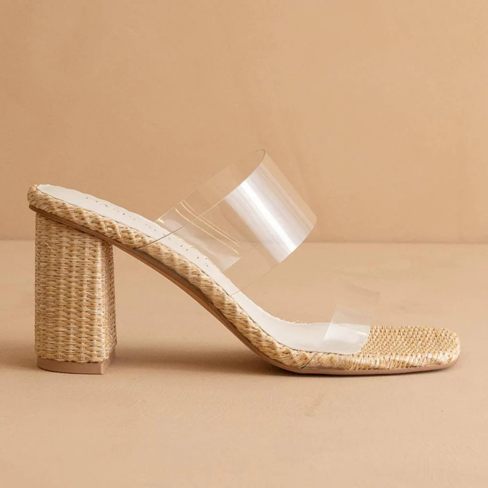 - The Francee combines clear double straps with a raffia-wrapped block heel for the ultimate warm-weather vibe.