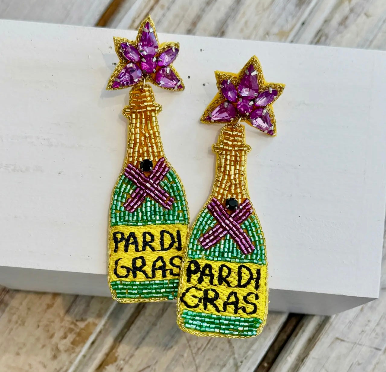 Pardi Gras beaded earrings. Add these to any of your Mardi Gras outfits to make them festive and fun!