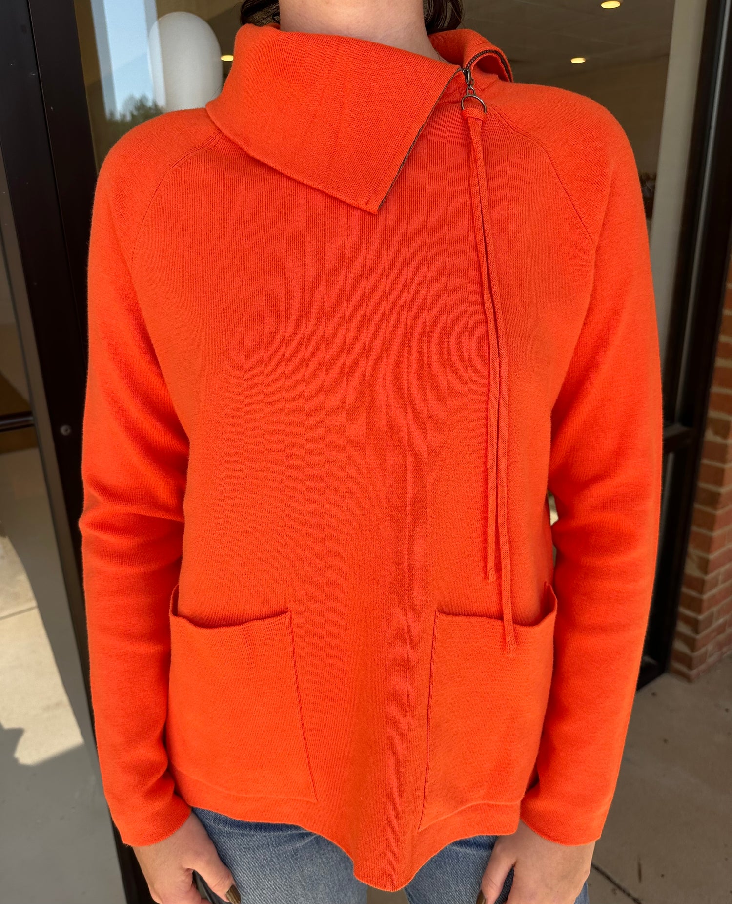 Renuar Orange Zip Neck Sweater