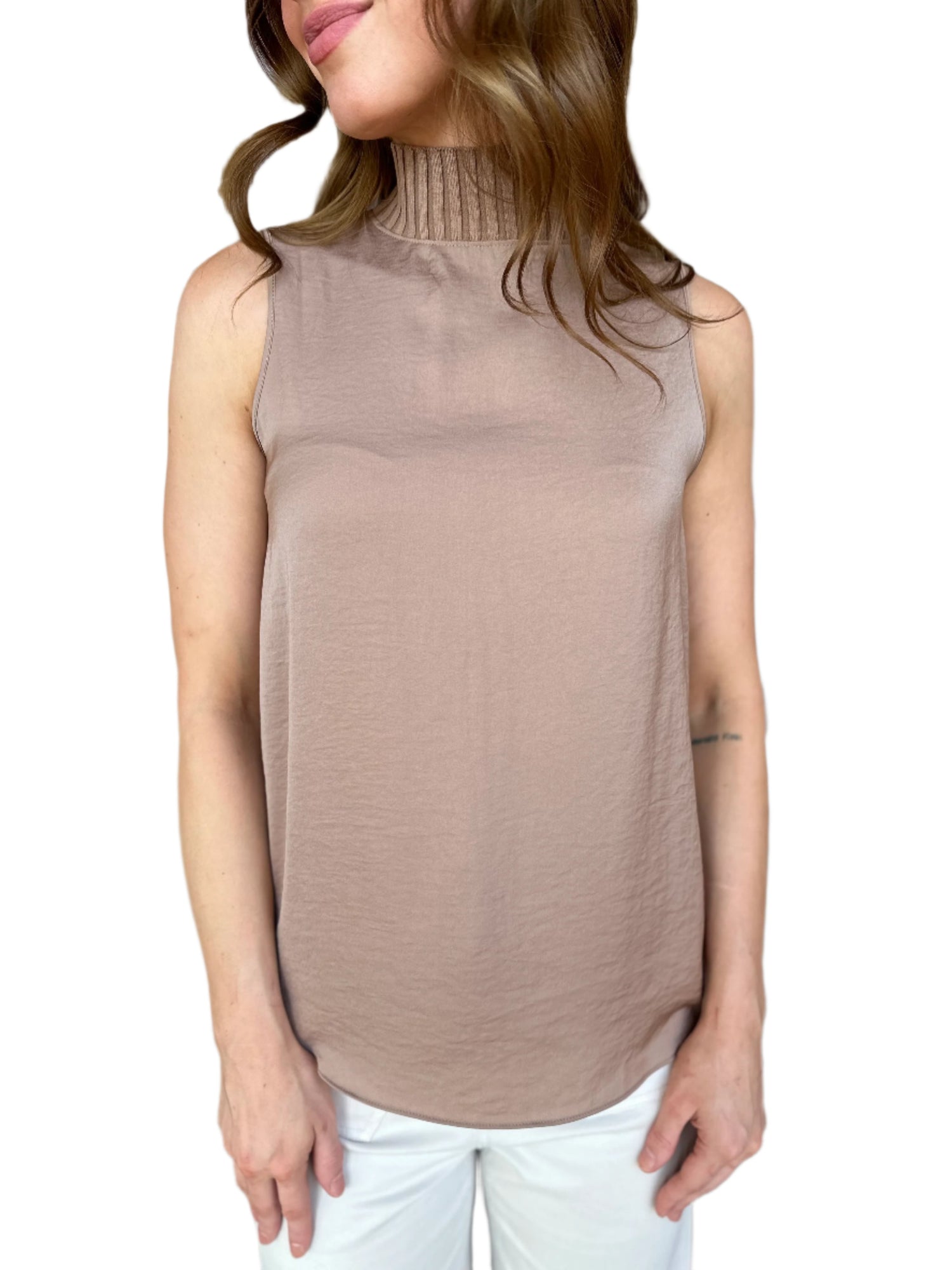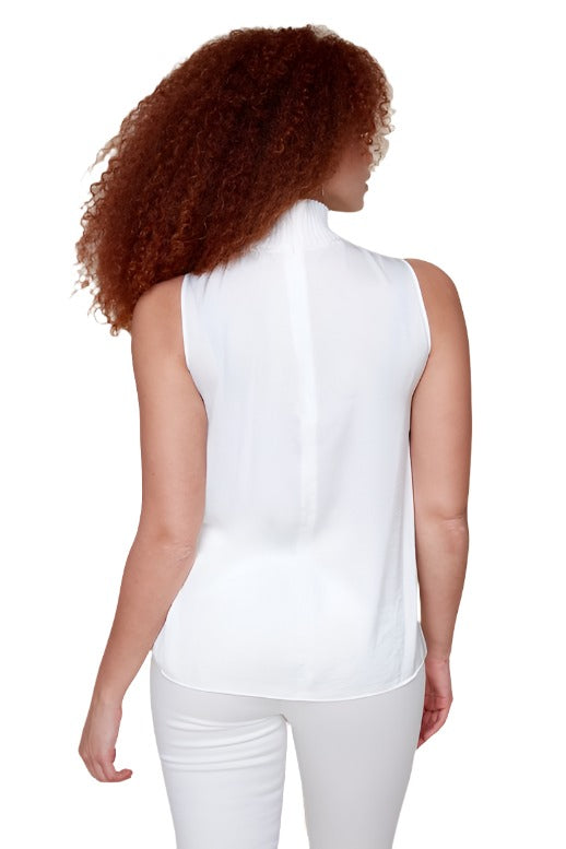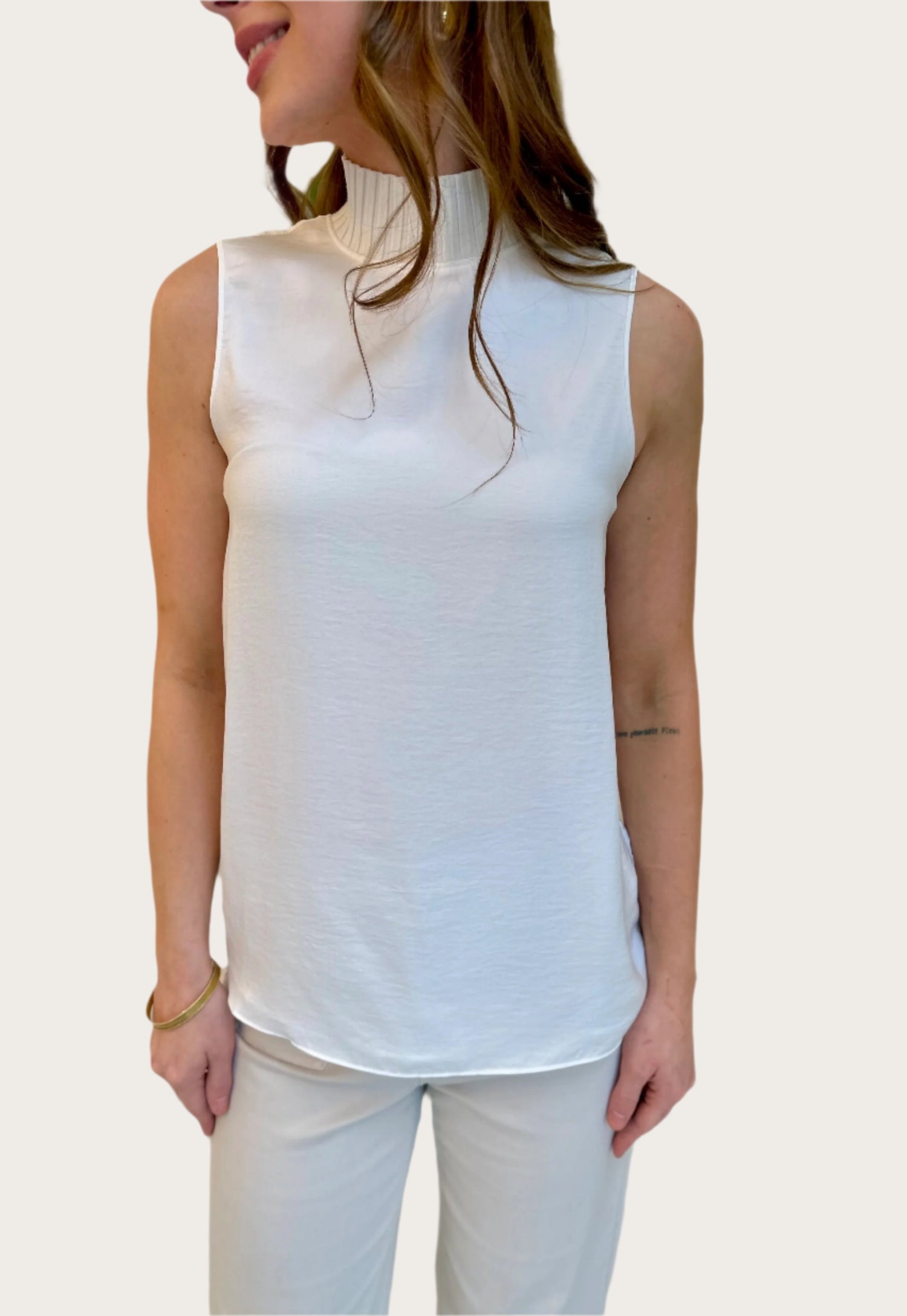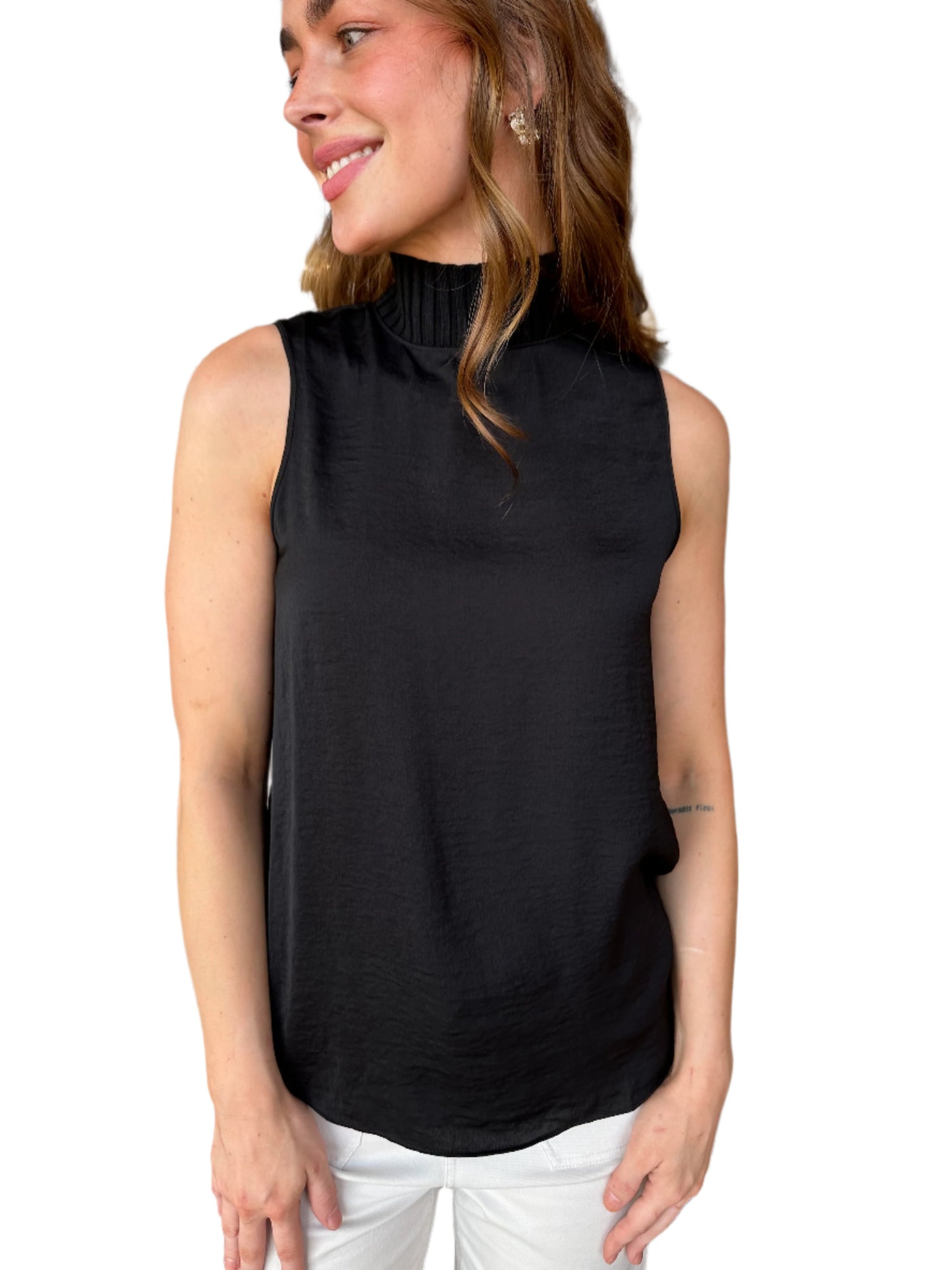 This classic blouse is sleeveless with a high neck. It is available in three colors and makes for a great staple piece to add to your wardrobe. You can dress it up or down by adding a blazer or wearing it with denim for any occasion!