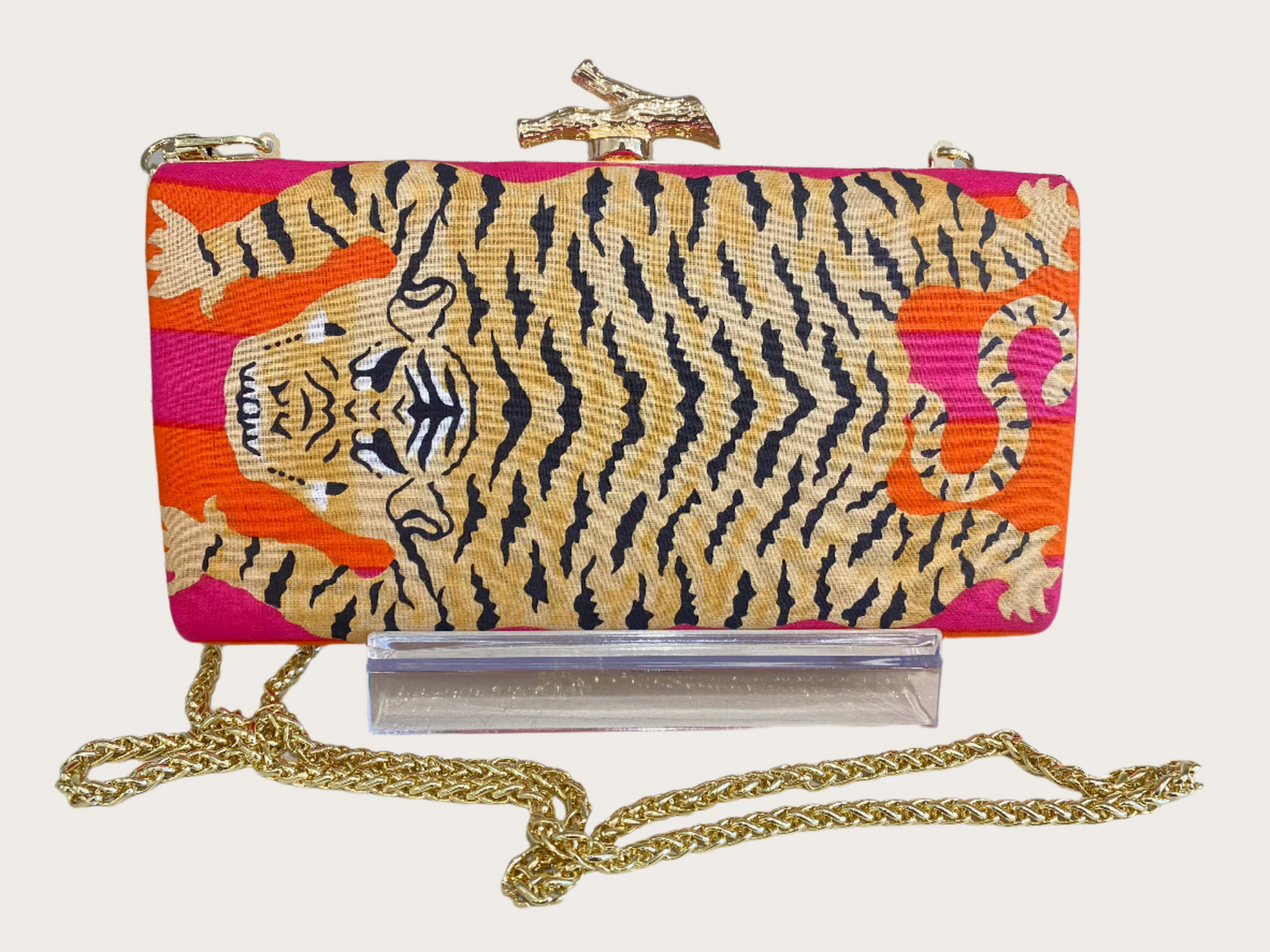 Hard to find print. Garland Bags Tiger Box Clutch with chain.
